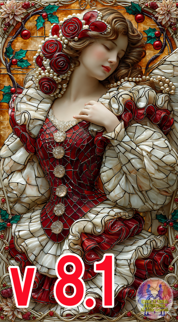 What should be pursued in v8.1 is the fusion of this “beauty of living light” with v8.1’s “overwhelming rendering of detail.” Through this fusion, I am convinced that works will be born possessing “a beauty closer to real stained glass, yet with a uniquely digital artistic expression” — something impossible in any previous version.