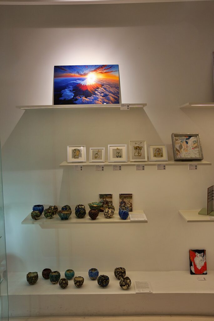 「展示写真の通り棚に設置させて頂きました。この棚は会場の主役となる特等席であったため、作品の内容も相まってかなり注目されました」